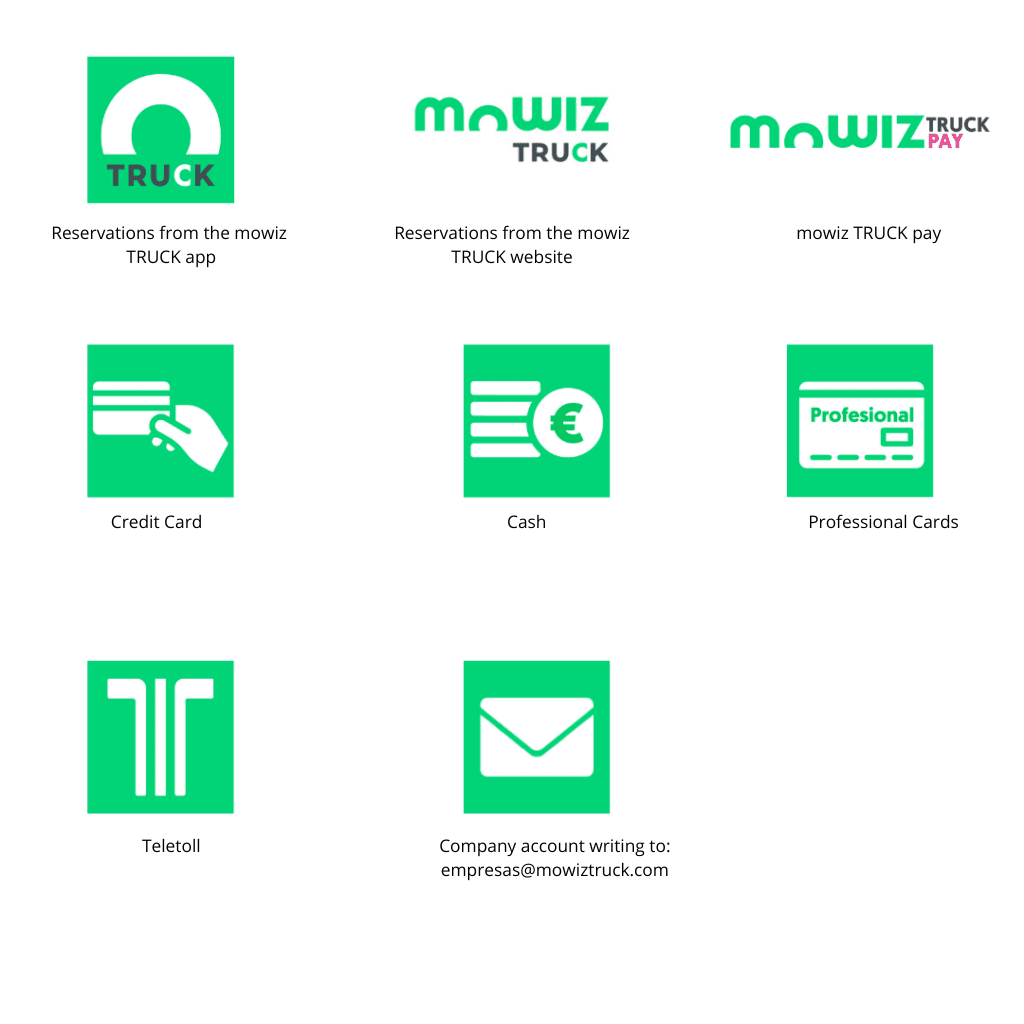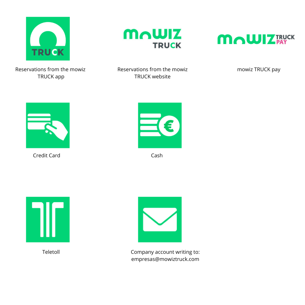 Access via reservation (when you reach the barrier, press the intercom) and via the mowiz TRUCK app