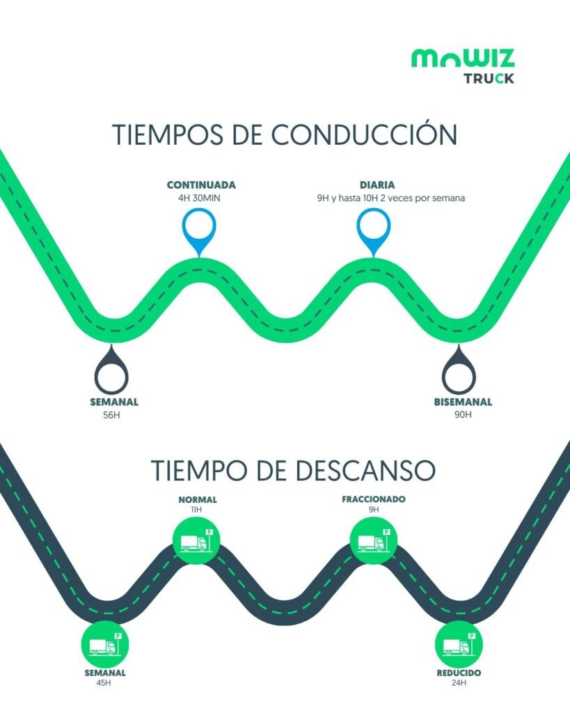 Los tiempos principales que deben respetar los conductores profesionales son: