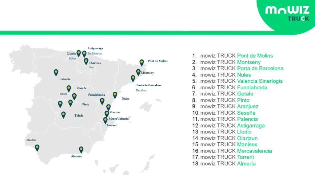 Destaca la aportación de mowiz TRUCK a la lista, con una Red de aparcamientos seguros para camiones que gestiona y/o comercializa seis de los ocho aparcamientos seguros certificados actualmente en España con el estándar de la Unión europea y tres más en proceso de certificación (Almería, Manises y Valencia).